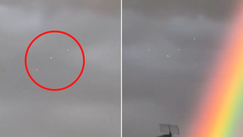 Tuż obok tęczy, która w tym regionie występuje bardzo rzadko, pojawiły się niezidentyfikowane obiekty świetlne. Poruszały się one pośród chmur.