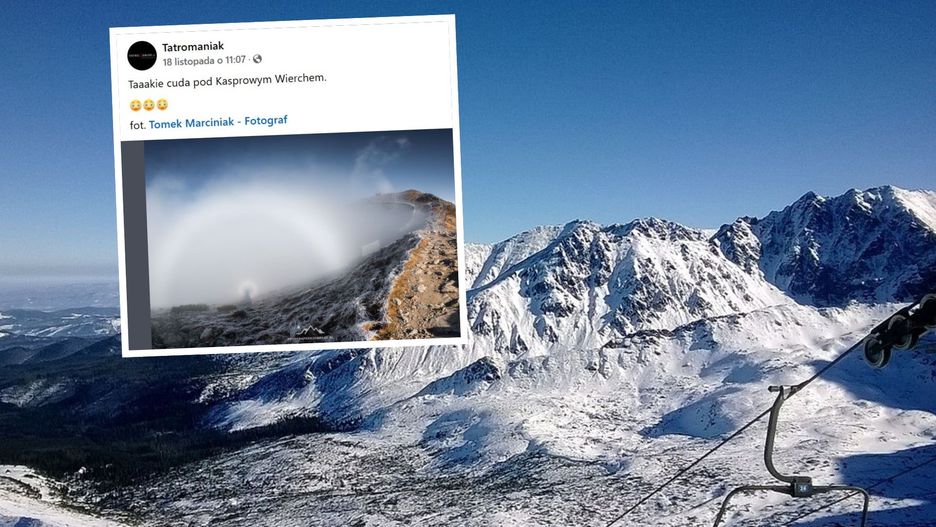 Fotograf Tomek Marciniak miał szczęście uchwycić widmo Brockenu w Tatrach, pod Kasprowym Wierchem. Zdjęcie trafiło na profil Tatromaniak na Facebooku, wywołując falę zachwytu. − Taaakie cuda pod Kasprowym Wierchem – napisali autorzy posta.